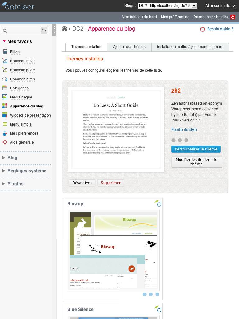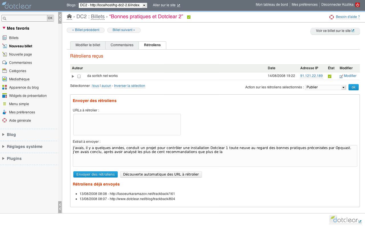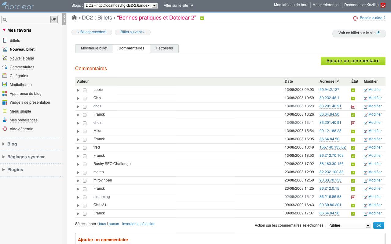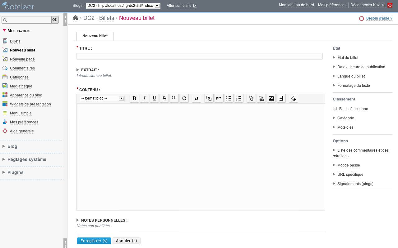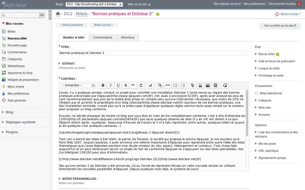 For the next version, we'll give in to the public side of Dotclear. But that is another story that we will tell at a later date...